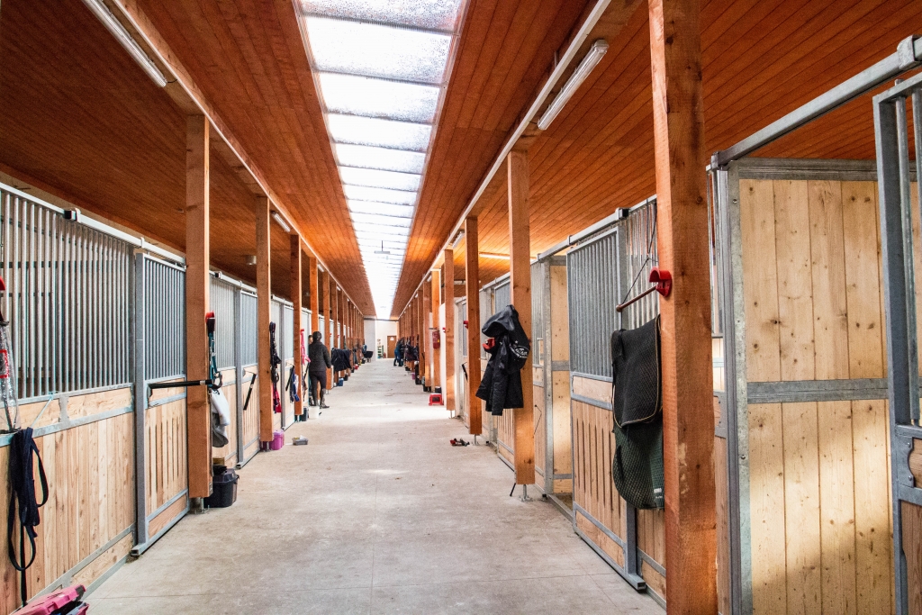 • stajne s dobrým presvetlením a odvetrávaním a priestrannými boxami 350 x 350 cm; sprchovací box, sedlovňa,